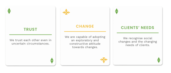The next time we played, trust was chosen as Topaasa – we thought aloud throughout the year, for example in team meetings – if we do or communicate this, will this increase confidence or decrease it from the customer’s point of view.