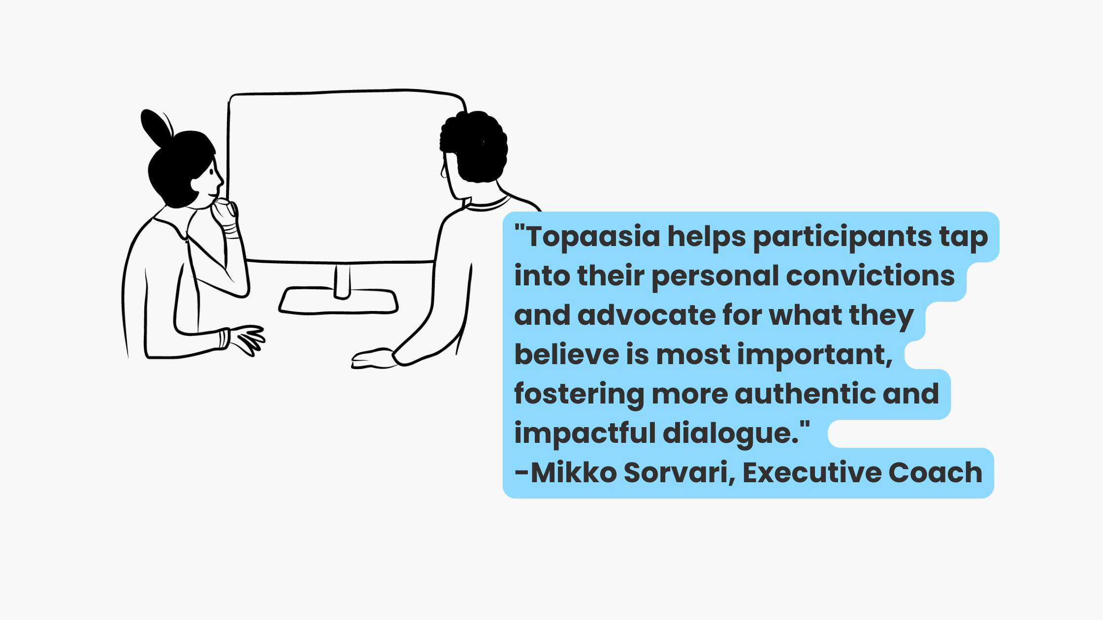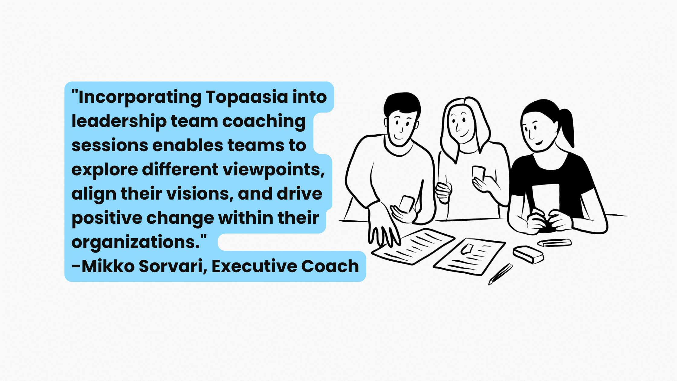 As an executive coach, Mikko encourages participants to take ownership of the conclusions and action items derived from the Topaasia sessions. By empowering them to drive the process and assume responsibility for implementing the agreed-upon actions, the game helps foster a sense of accountability and ownership among the participants.