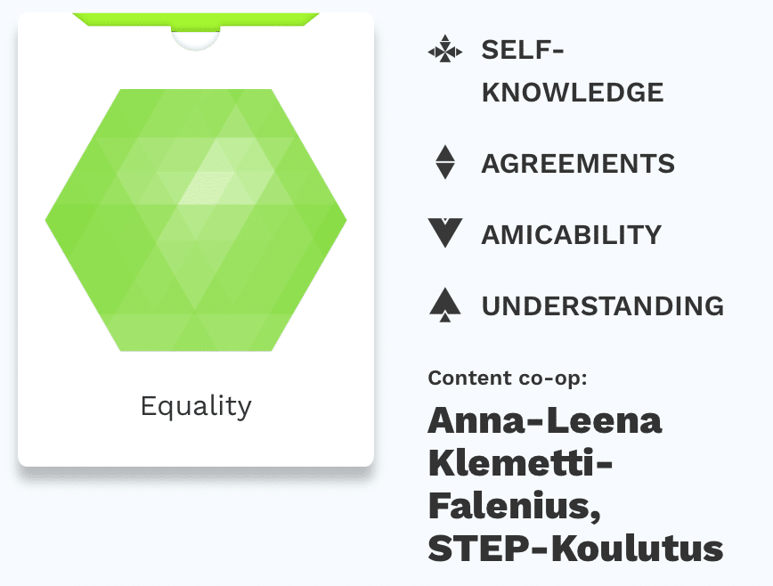 - If you want to use the Equality game for your work community or organization, book a presentation at galla@topaasia.com or call +358 40 024 6626