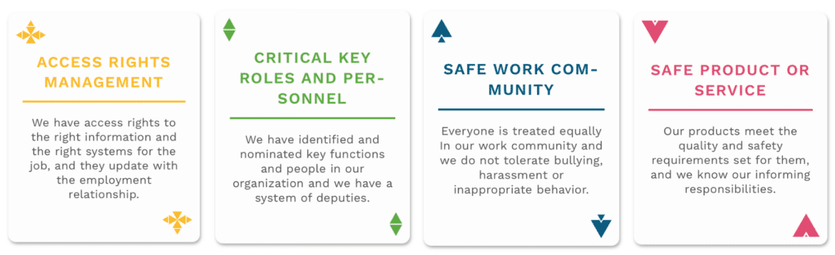 Paula: We wanted to make an inclusive approach that creates an opportunity to discuss and create a common understanding of Organizational Safety so that we reach a concrete level. That is, the discussions are not left to the high cloud vision talk. As an easy-to-use tool, I think this would be a great tool for the annual safety management clock to use every year. This would lead to different areas of development each year and strengthen the rooting of the importance of security. The game is also a different, modern, and non-place way to deal with these things.