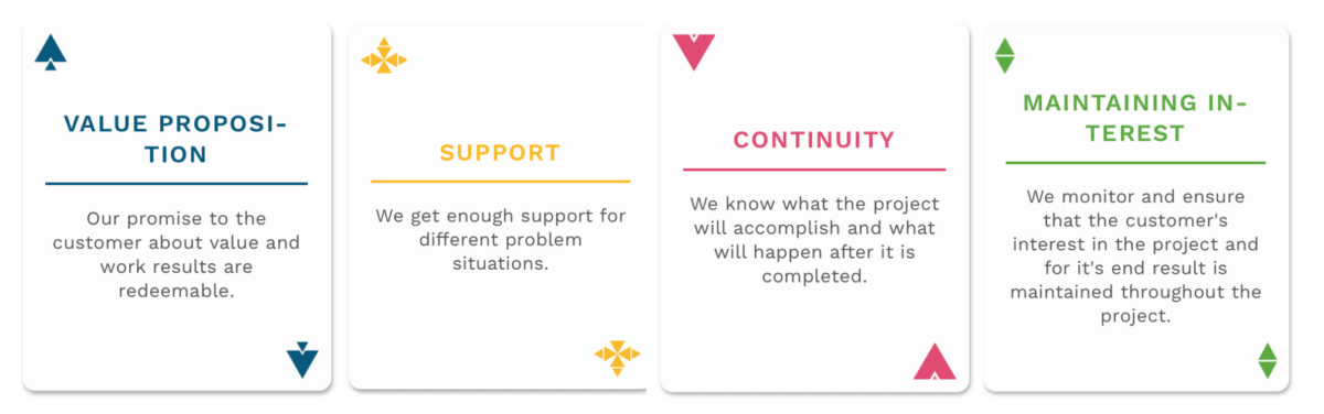 -We collected the typical obstacles we usually encounter in projects from our employees and project leaders. They were grouped into different themes that gave birth to those four suites of the deck. In other words, we recognized that we were repeating certain aspects and started making them into cards, Johanna sums up.