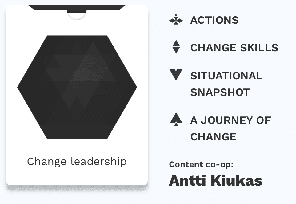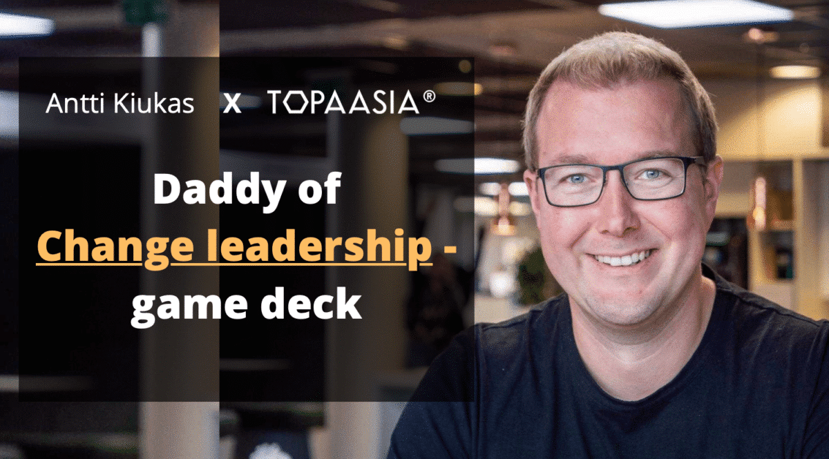 We worked with Antti onTopaasia®: Change Leadership – deck, which summarizes Antti’s years of experience working with organizational change. In this interview, Antti opens his thinking about the contents of the deck, ie change leadership: