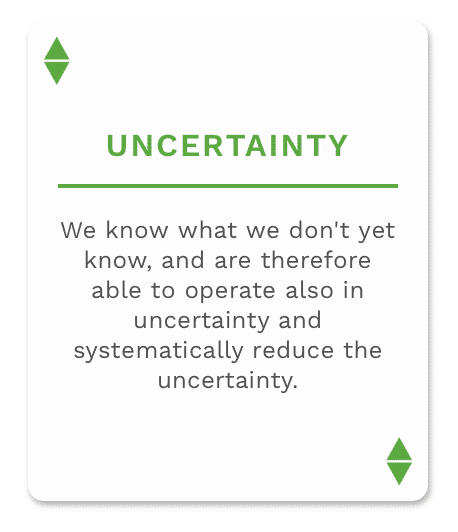 This is taboo. Everyone knows that risks need to be addressed, but the discussion of risks is often fussy, where risks are invented so that it can be said that a risk analysis has been done. The paradox is that the more risks involved, the more likely the project is not to progress and, of course, those planning the project want the project to progress. Because of this, we are talking about uncertainties rather than risks. We often see people imagining that before we have the final absolute knowledge nothing be acted upon, which is as if the opposite of lean and agility.