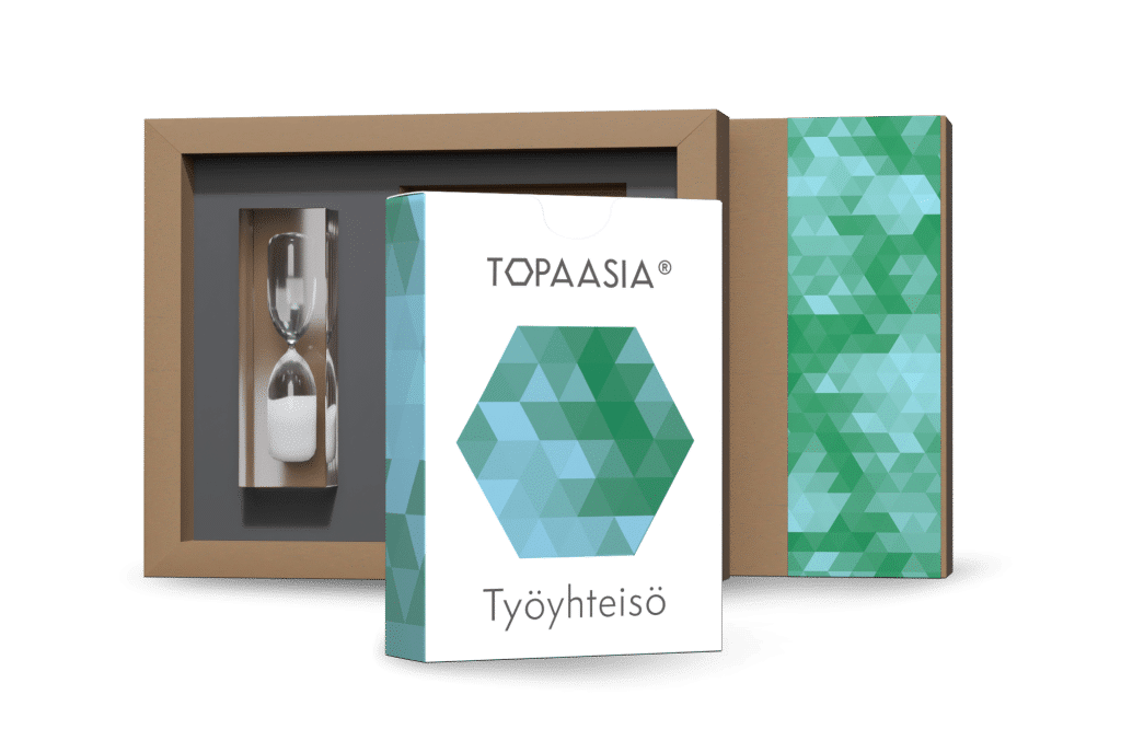 Käytimme Topaasiaa® tiimipäivissämme kesäkuussa ja kävimme loistavaa dialogia. Peli oli helppo käyttää ja sisältö auttoi menemään suoraan asiaan. Saimme jokaisen äänen kuuluviin sekä erinomaisen lopputuloksen, joista juonsimme tulevat kehityslinjat. Tulemme käyttämään pelejä uudestaan - suosittelen!