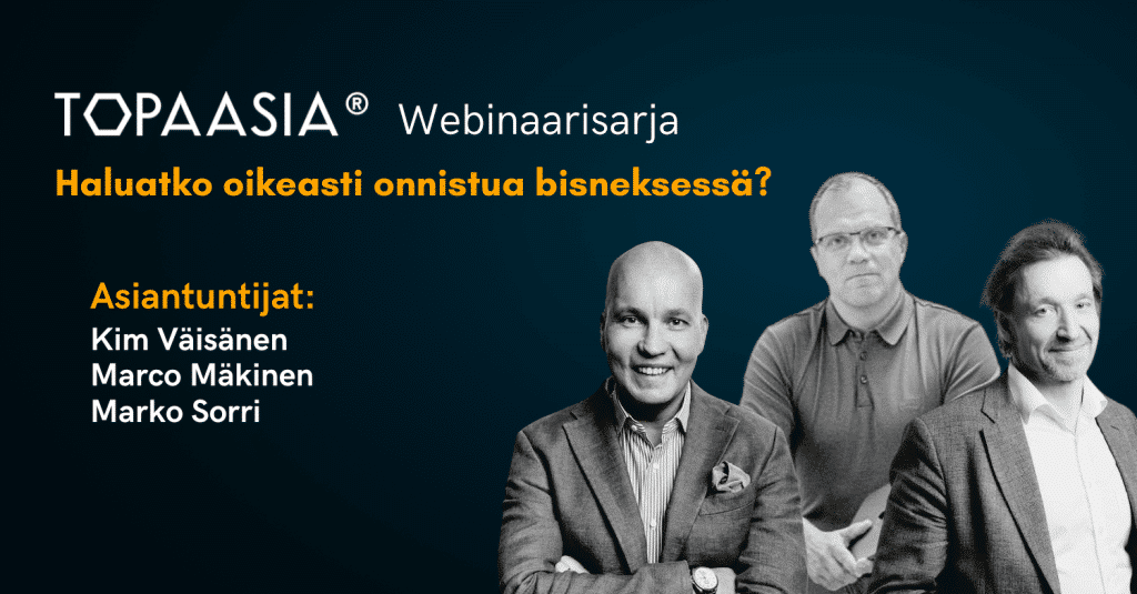 Lähde Topaasian ja huippuammattilaisten kanssa viiden webinaarin matkalle tutkimaan, miten juuri sinä tai organisaatiosi voitte aloittaa ja tehdä menestyksekästä bisnestä. Alla webinaarien teemat, aikataulut ja puhuja.