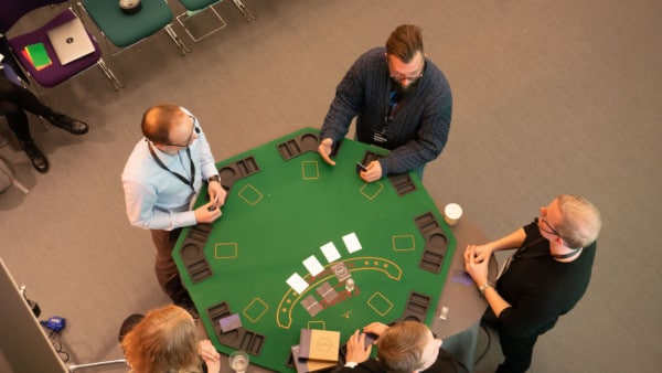 Pelisession aiheena oli Siilin strategia. Johtoryhmä käsitteli aihetta pelaamalla uusinta Topaasia® – peliä Merkitys pelimies Jussi Gallan jakamalla pelipöydällä.