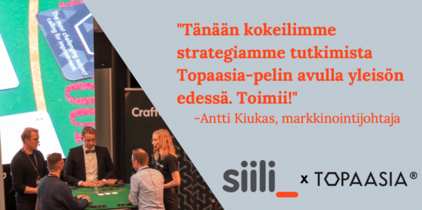 Siili Solutions Oyj:n johto pelasi Topaasiaa 200 hlön edessä.